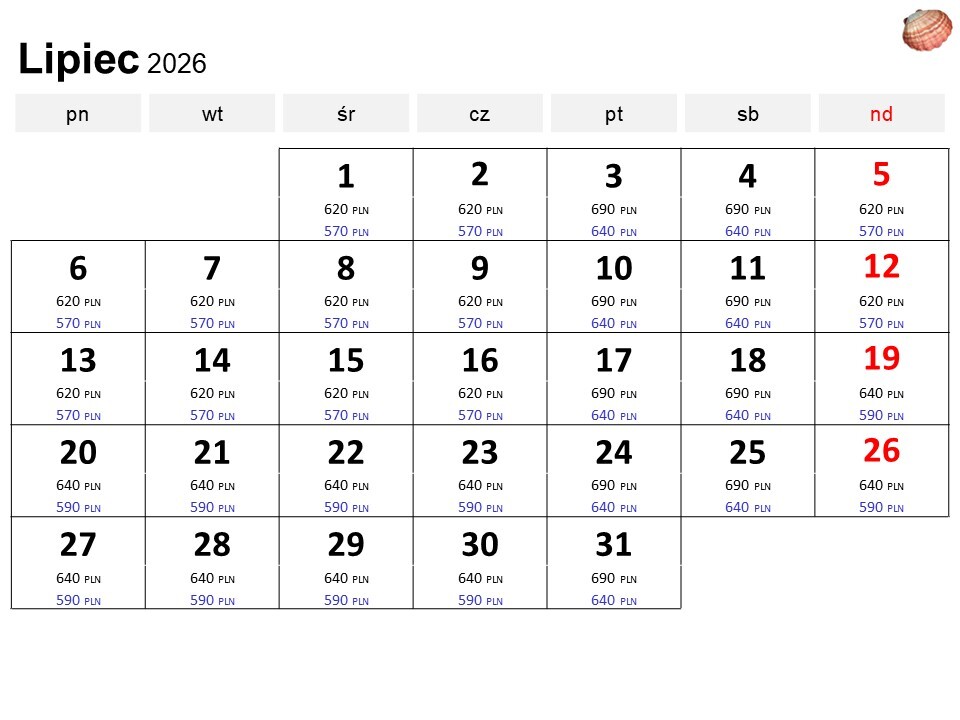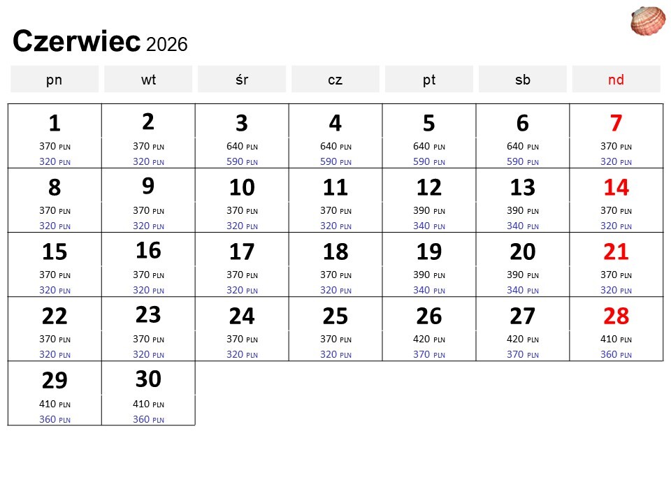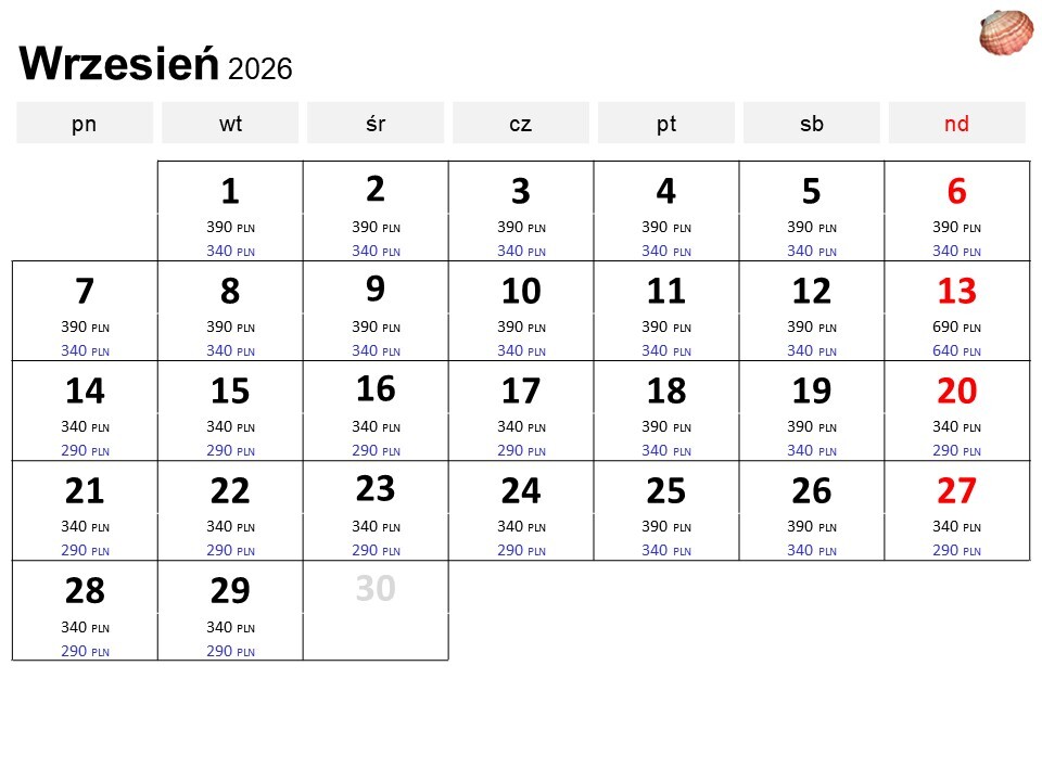 LEGENGA: PLN - cena dla max. 4 osób PLN - cena dla max. 2 osób